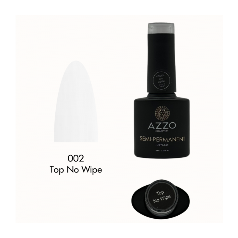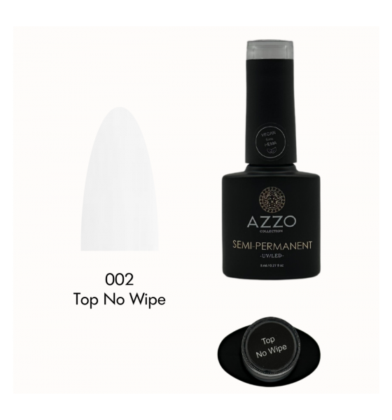 Top Coat No Wipe AZZO : brillance éclatante sans résidu collant. Finition durable et sans nettoyage pour une manucure parfaite.
